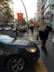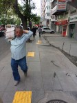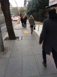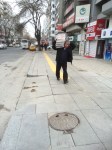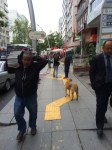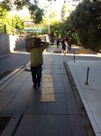 Gazete kolisi taşıyan adamla karşılaşılan kaldırımdan bir görüntü